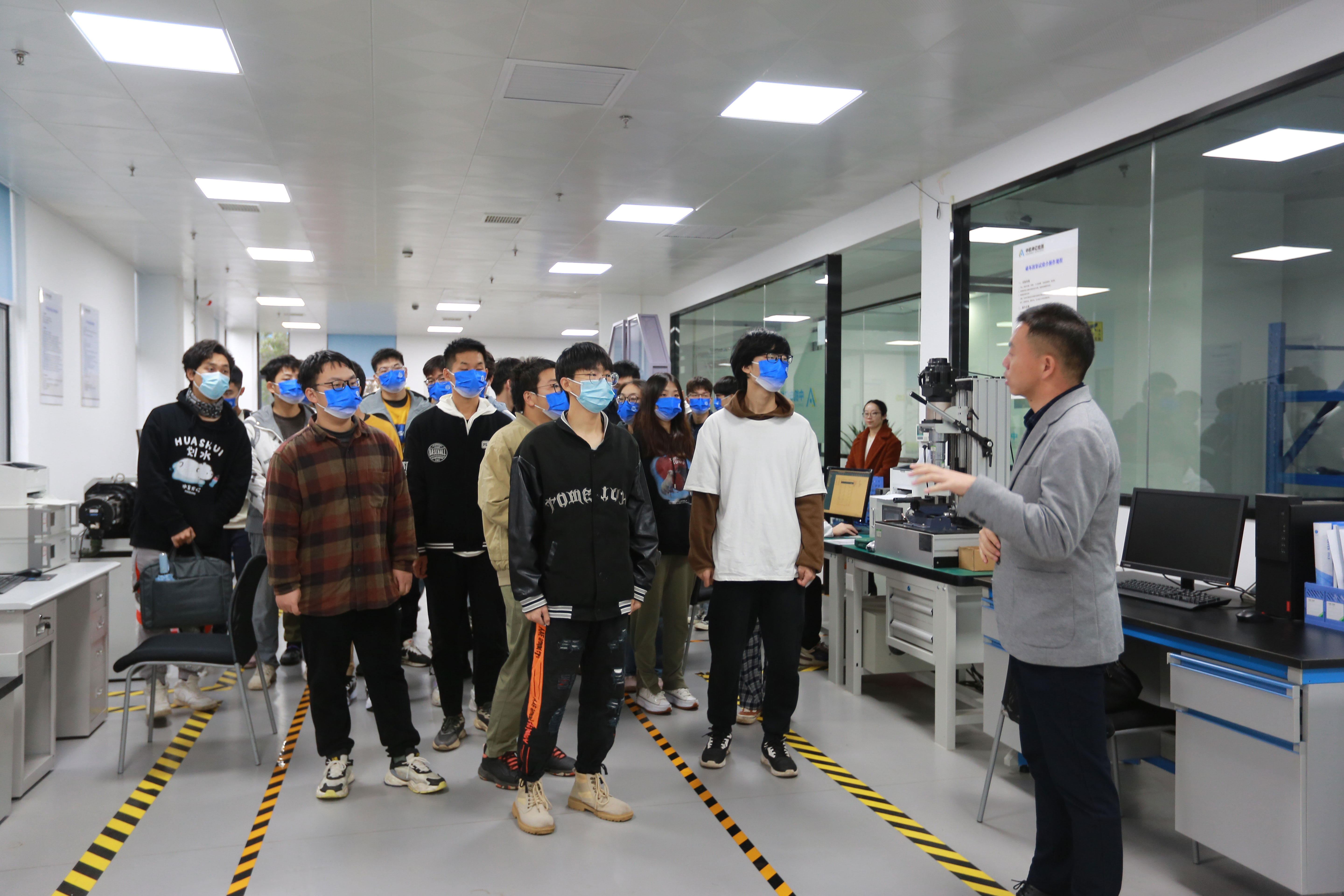 公司總經(jīng)理呂闖帶領(lǐng)學(xué)生們參觀了實(shí)驗(yàn)室,向長(zhǎng)理大學(xué)生們介紹了公司的檢測(cè)技術(shù)能力、多種高端檢測(cè)設(shè)備及其試驗(yàn)原理,重點(diǎn)講解了摩擦系數(shù)試驗(yàn)機(jī)、模擬裝配試驗(yàn)系統(tǒng)、掃描電子顯微鏡、橫向振動(dòng)試驗(yàn)機(jī)、持久蠕變?cè)囼?yàn)機(jī)等專業(yè)設(shè)備的運(yùn)用??偨?jīng)理表示非常歡迎長(zhǎng)理大學(xué)生們來(lái)公司進(jìn)行實(shí)習(xí),號(hào)召大家學(xué)以致用,將自己在課堂上學(xué)到的理論知識(shí)真正運(yùn)用到實(shí)際工作中來(lái)。